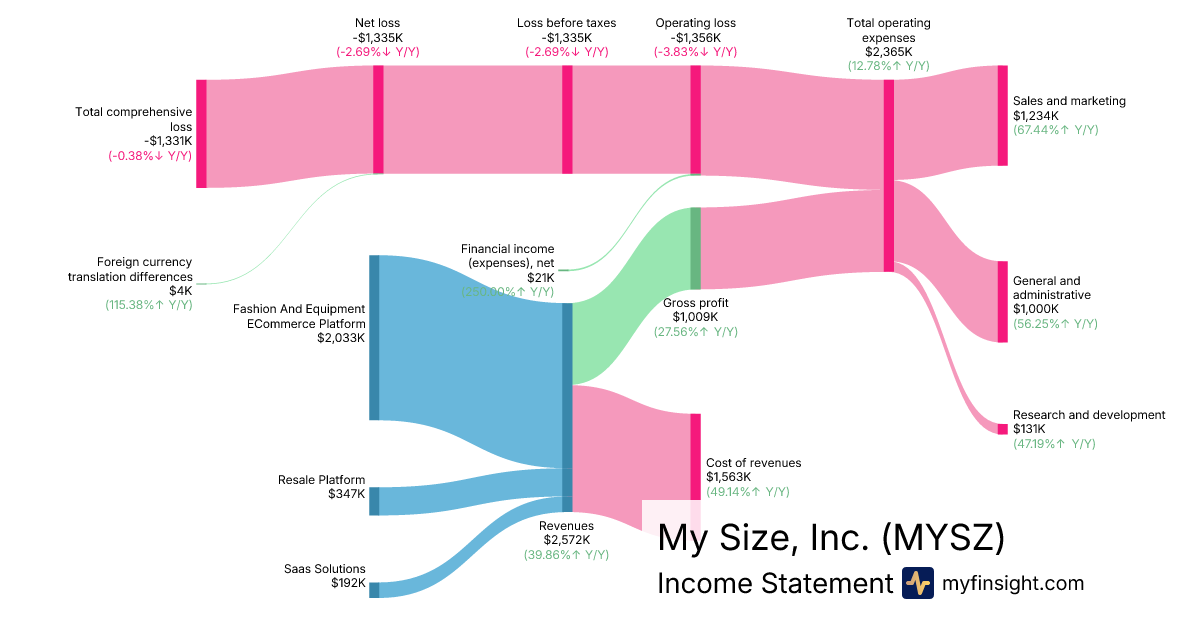 For the quarter ending 2025-09-30, MYSZ made $2,572K in revenue. -$1,331K in net income. Net profit margin of -51.75%.