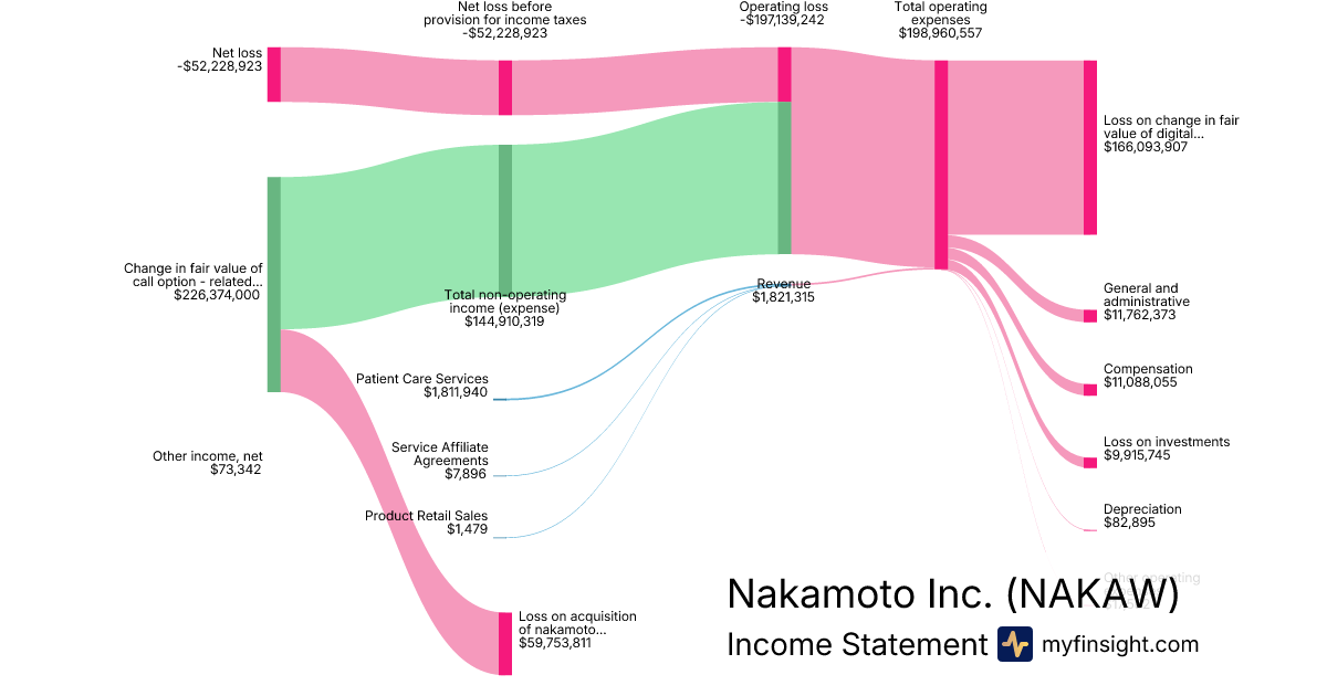 For the year ending 2025-12-31, NAKAW made $1,821,315 in revenue. -$52,228,923 in net income. Net profit margin of -2867.65%.