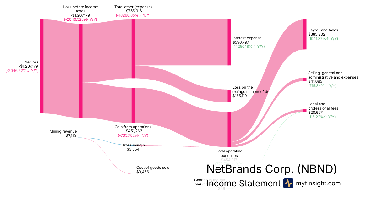 For the quarter ending 2025-09-30, NBND made $7,110 in revenue. -$1,207,179 in net income. Net profit margin of -16978.61%.