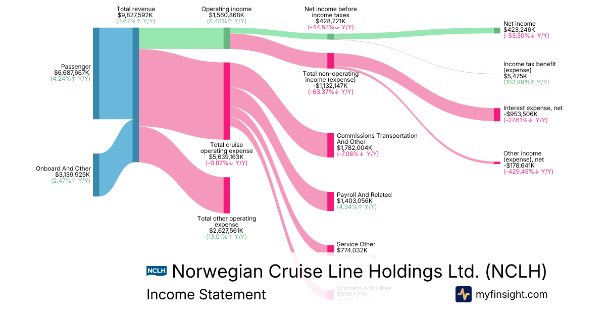 For the year ending 2025-12-31, NCLH made $9,827,592K in revenue. $423,246K in net income. Net profit margin of 4.31%.