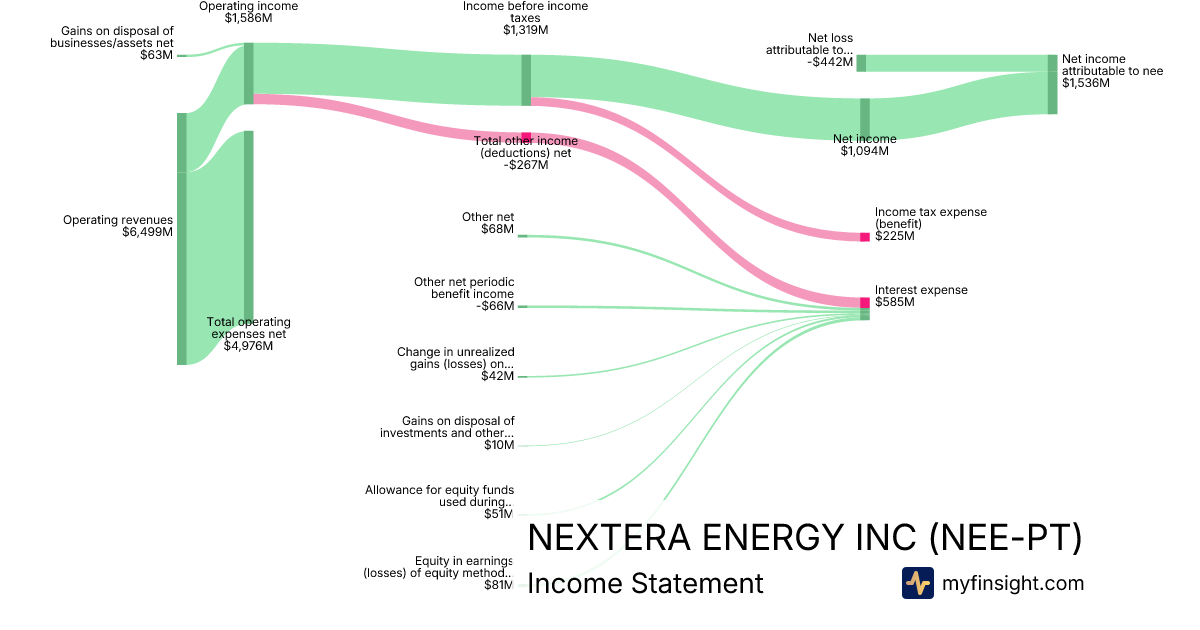 For the year ending 2025-12-31, NEE-PT made $45,231M in revenue. $6,835M in net income. Net profit margin of 15.11%.