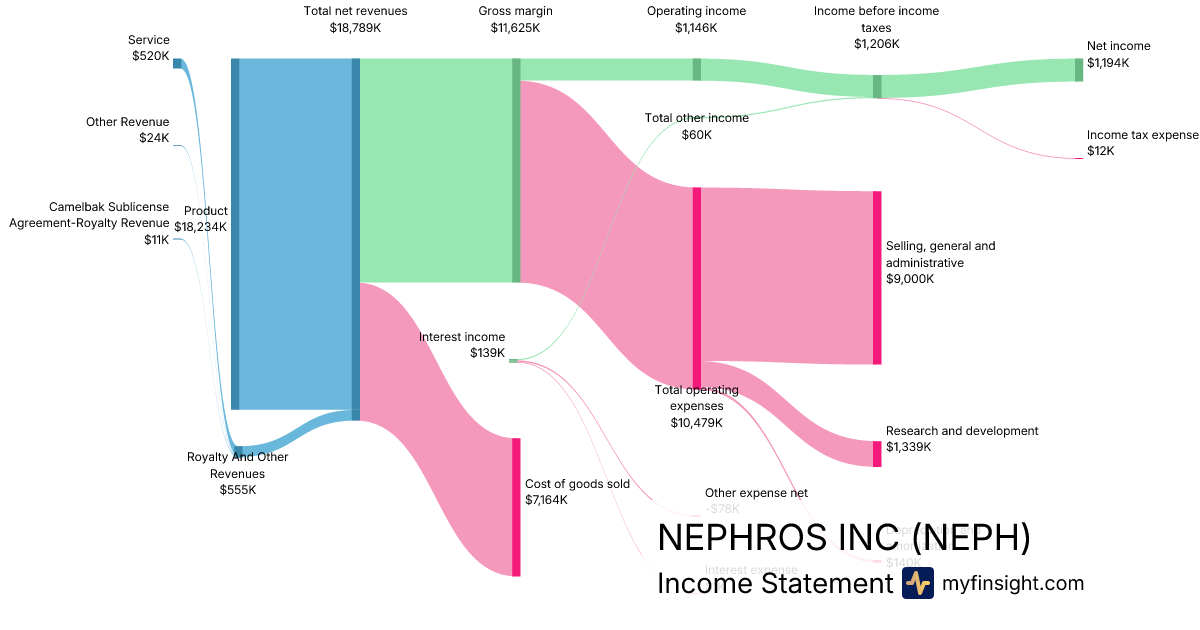 For the year ending 2025-12-31, NEPH made $18,789K in revenue. $1,194K in net income. Net profit margin of 6.35%.