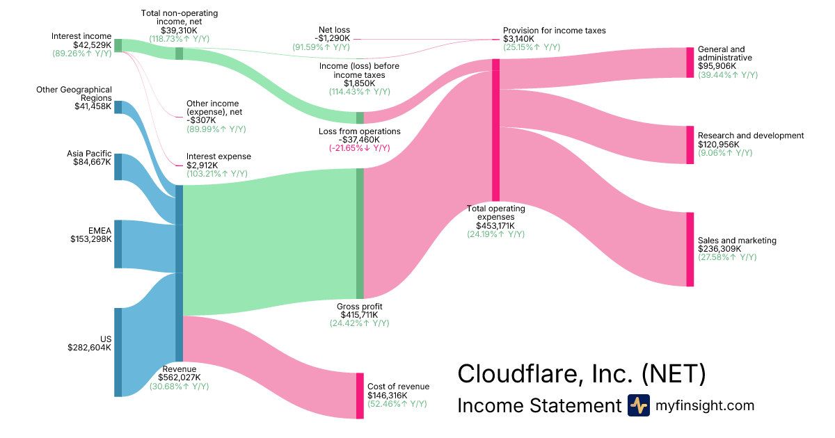 For the quarter ending 2025-09-30, NET made $562,027K in revenue. -$1,290K in net income. Net profit margin of -0.23%.