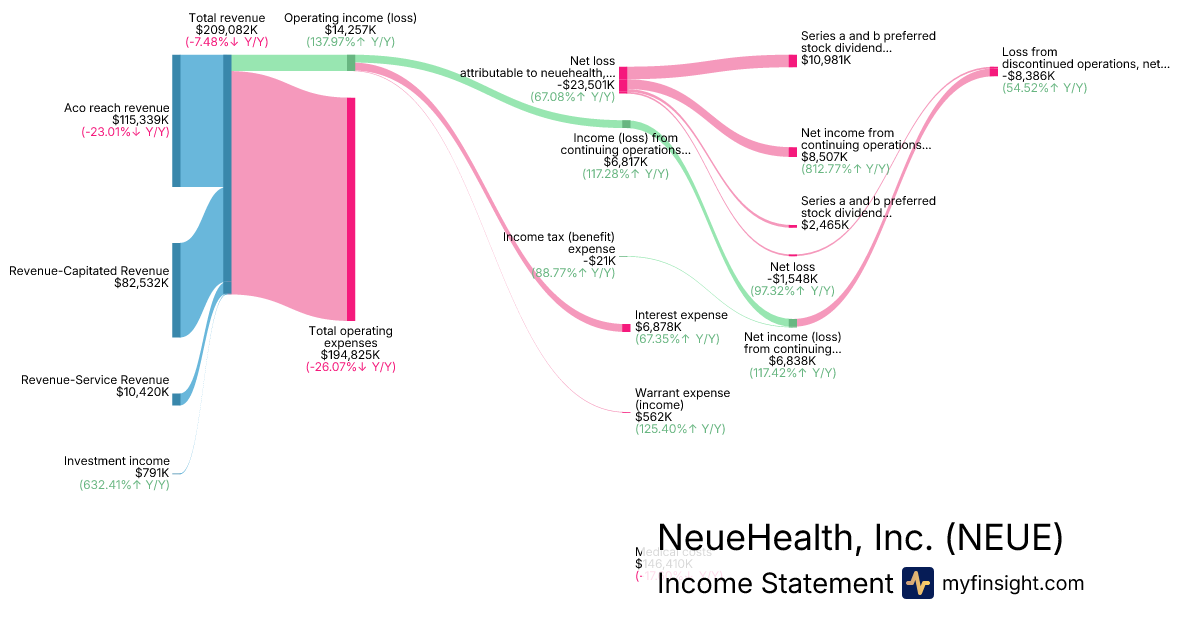 For the quarter ending 2025-06-30, NEUE made $209,082K in revenue. -$23,501K in net income. Net profit margin of -11.24%.