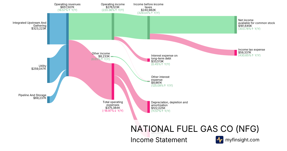 For the quarter ending 2025-12-31, NFG made $651,507K in revenue. $181,645K in net income. Net profit margin of 27.88%.
