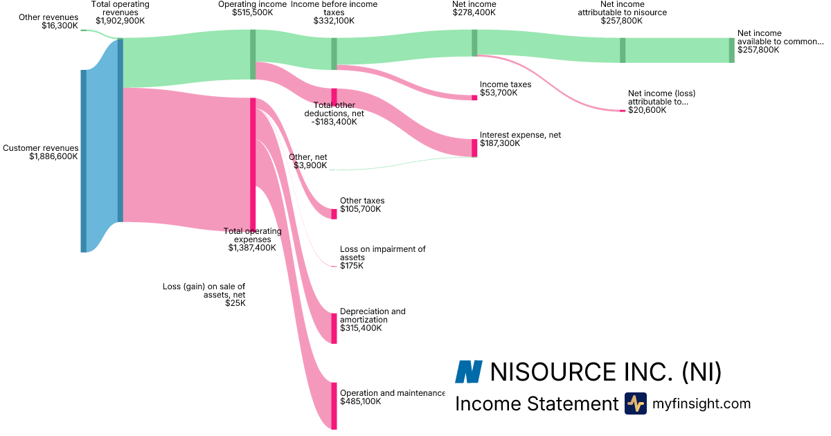 | Net income attributable to nisource | 929,500 | 760,400 | 714,300 | 804,100 |