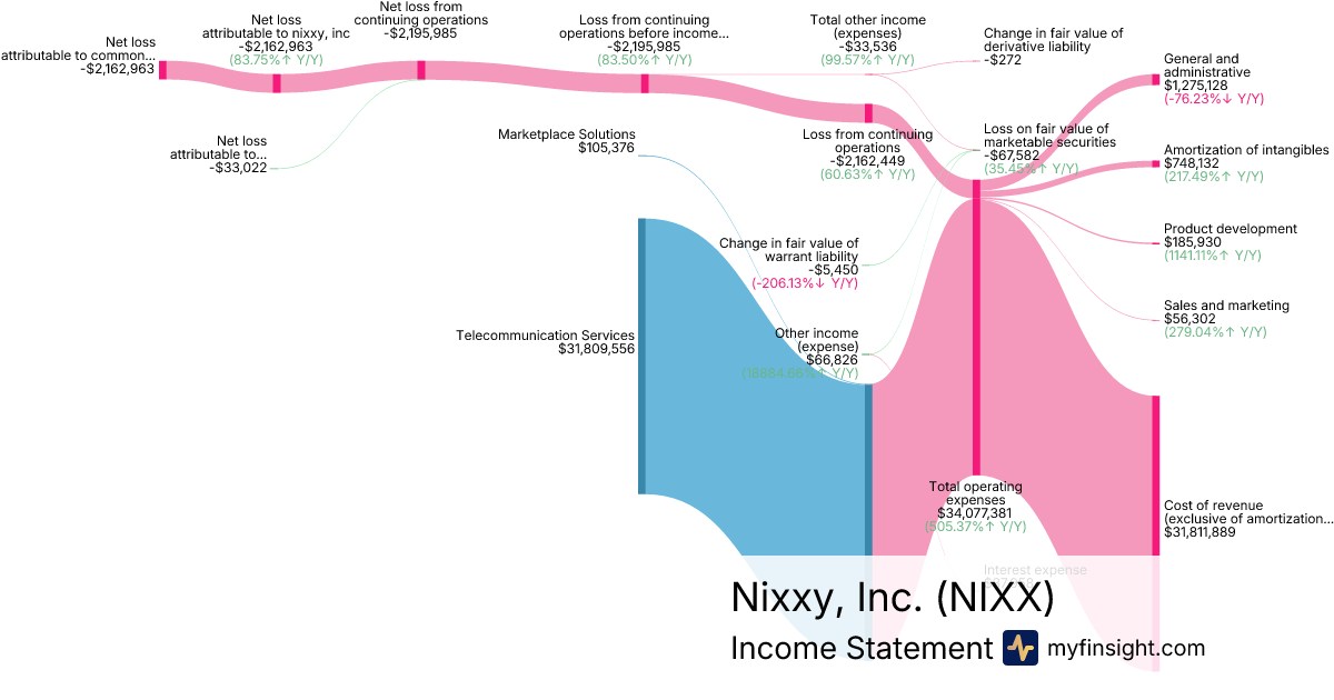 For the quarter ending 2025-09-30, NIXX made $31,914,932 in revenue. -$2,162,963 in net income. Net profit margin of -6.78%.