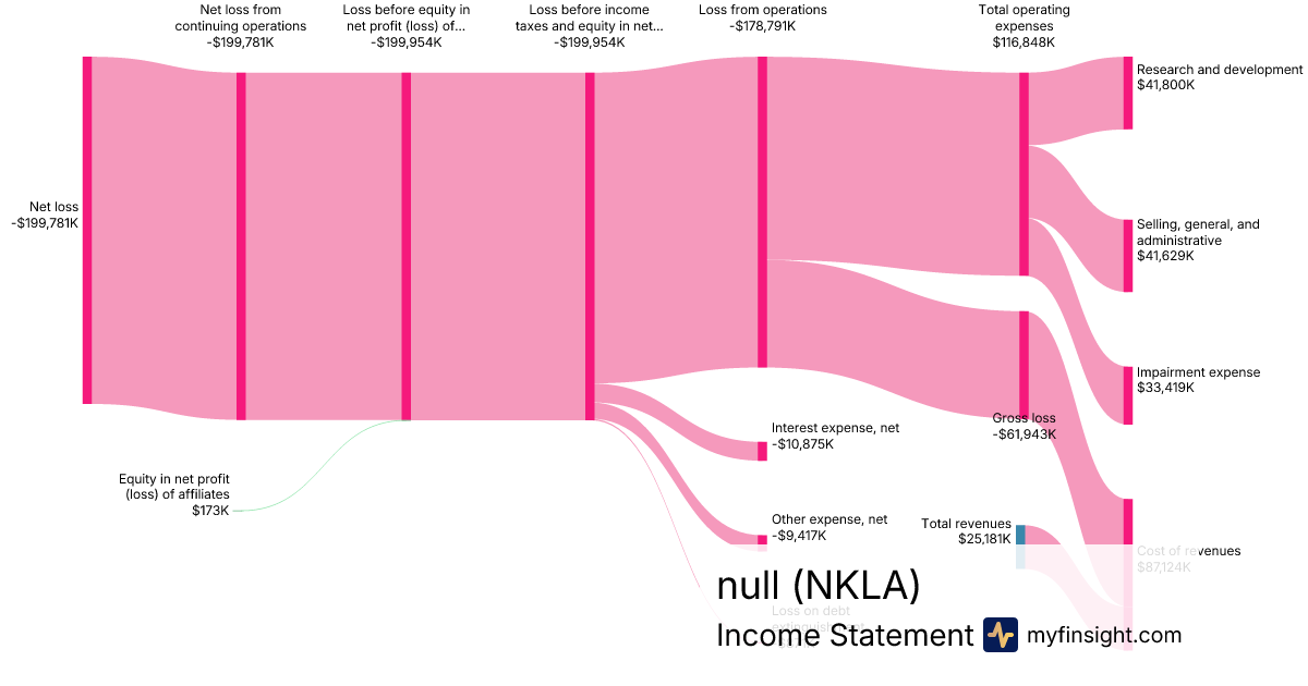 For the quarter ending 2024-09-30, NKLA made $25,181K in revenue. -$199,781K in net income. Net profit margin of -793.38%.
