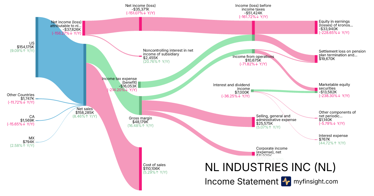 For the year ending 2025-12-31, NL made $158,285K in revenue. -$37,826K in net income. Net profit margin of -23.90%.