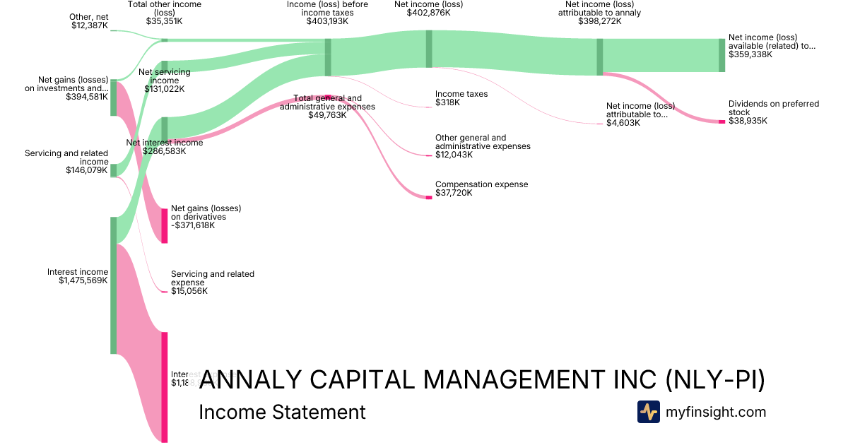 For the year ending 2025-12-31, NLY-PI made $8,528,347K in revenue. $1,869,331K in net income. Net profit margin of 21.92%.