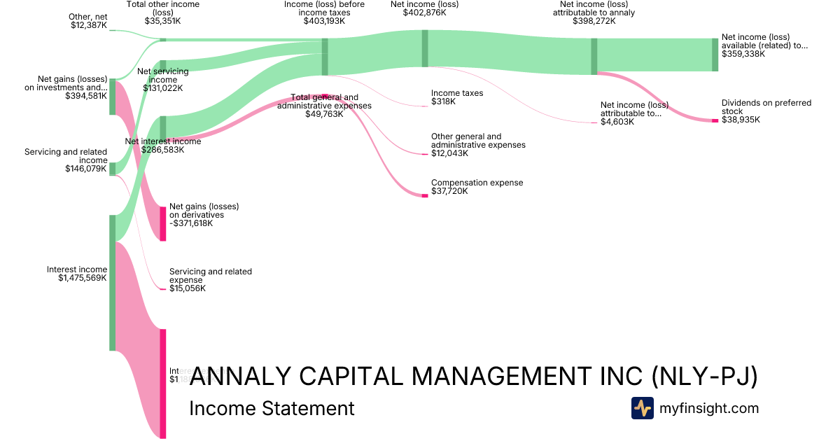 For the year ending 2025-12-31, NLY-PJ made $8,528,347K in revenue. $1,869,331K in net income. Net profit margin of 21.92%.