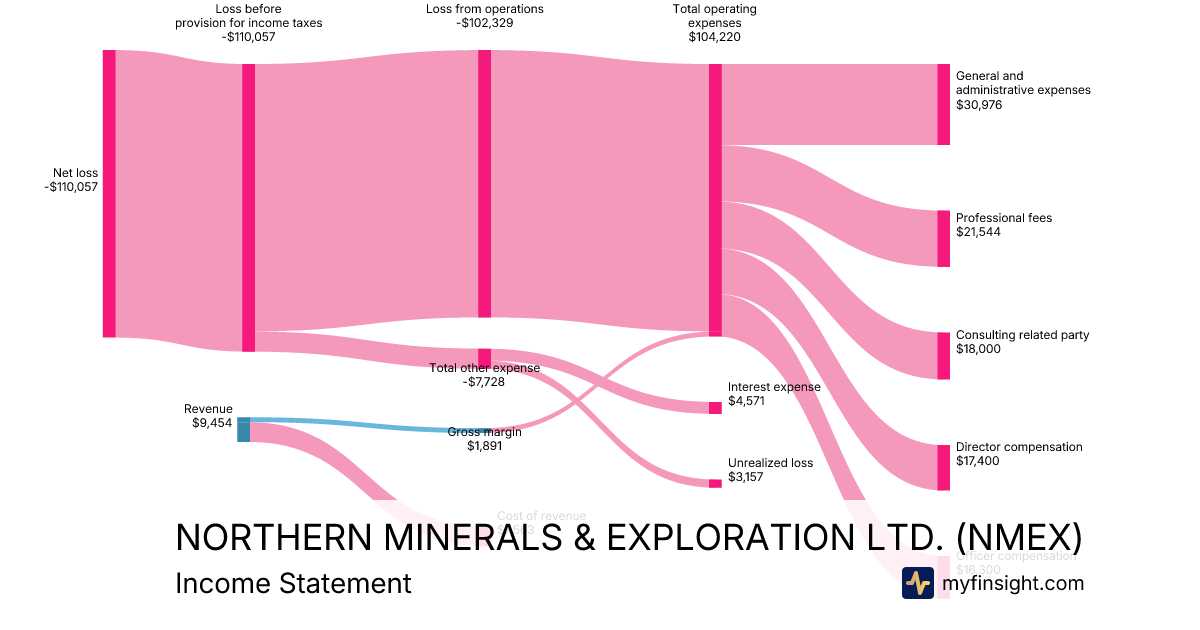 For the quarter ending 2026-01-31, NMEX made $9,454 in revenue. -$110,057 in net income. Net profit margin of -1164.13%.