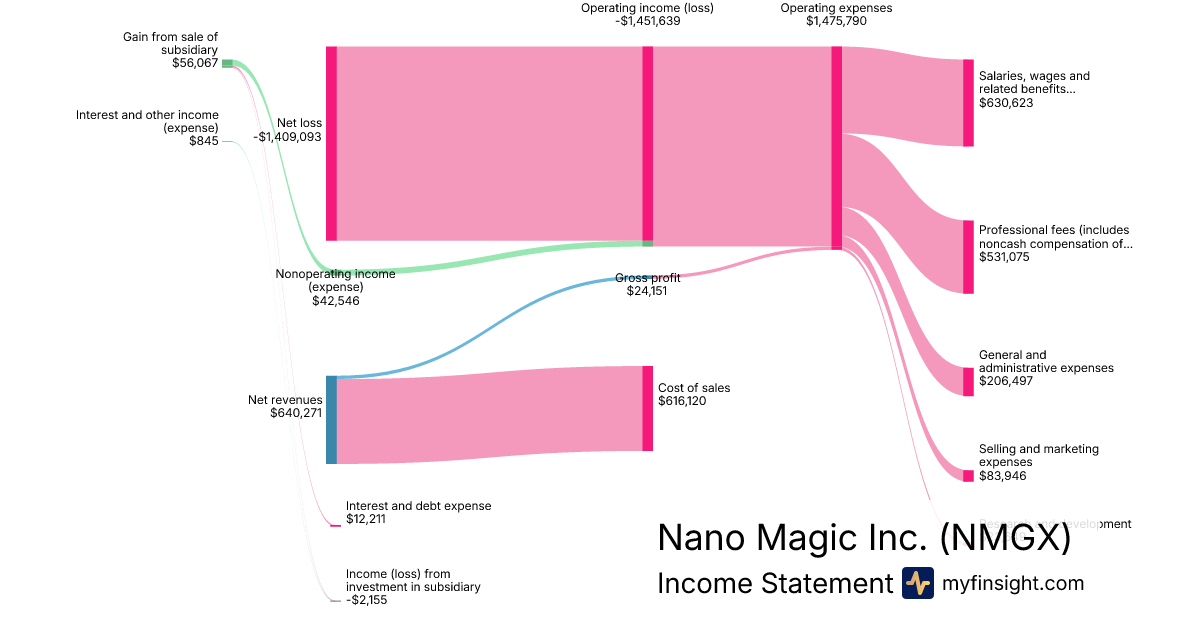 For the quarter ending 2024-09-30, NMGX made $640,271 in revenue. -$1,409,093 in net income. Net profit margin of -220.08%.