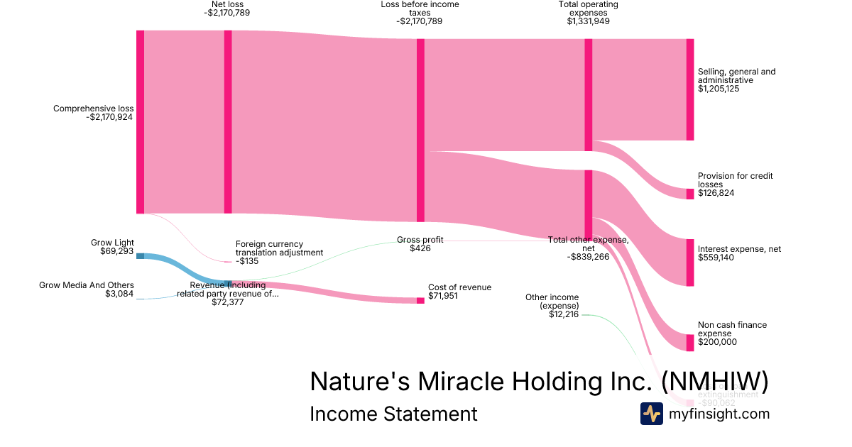 For the quarter ending 2025-09-30, NMHIW made $72,377 in revenue. -$2,170,924 in net income. Net profit margin of -2999.47%.