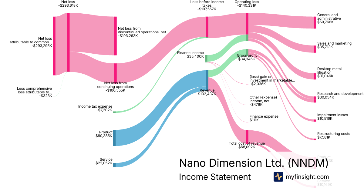 For the year ending 2025-12-31, NNDM made $102,437K in revenue. -$293,295K in net income. Net profit margin of -286.32%.