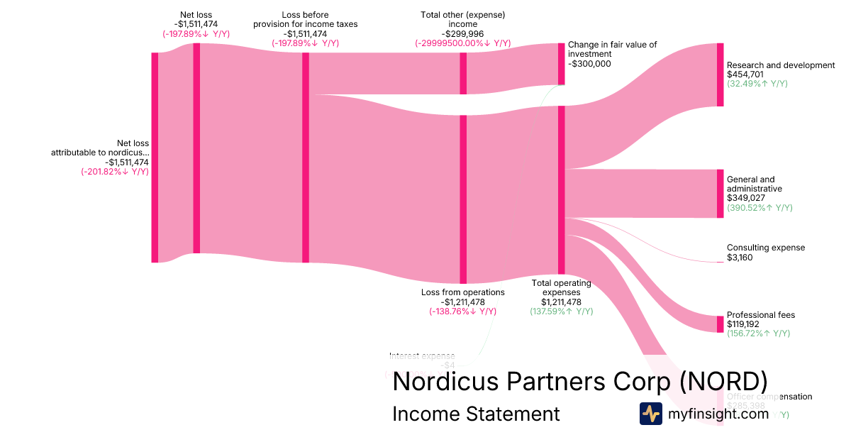 | Net loss attributable to nordicus partners corporation | -1,511,474 | -1,206,886 | -500,785 | -258,169 |