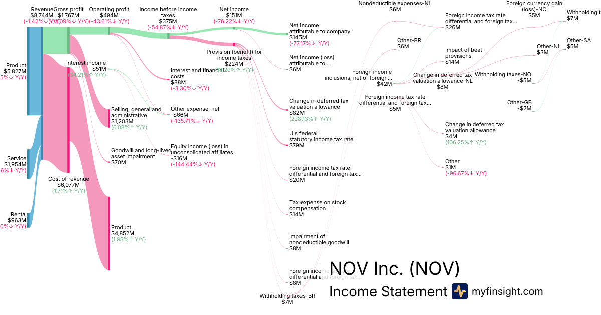 For the year ending 2025-12-31, NOV made $8,744M in revenue. $145M in net income. Net profit margin of 1.66%.