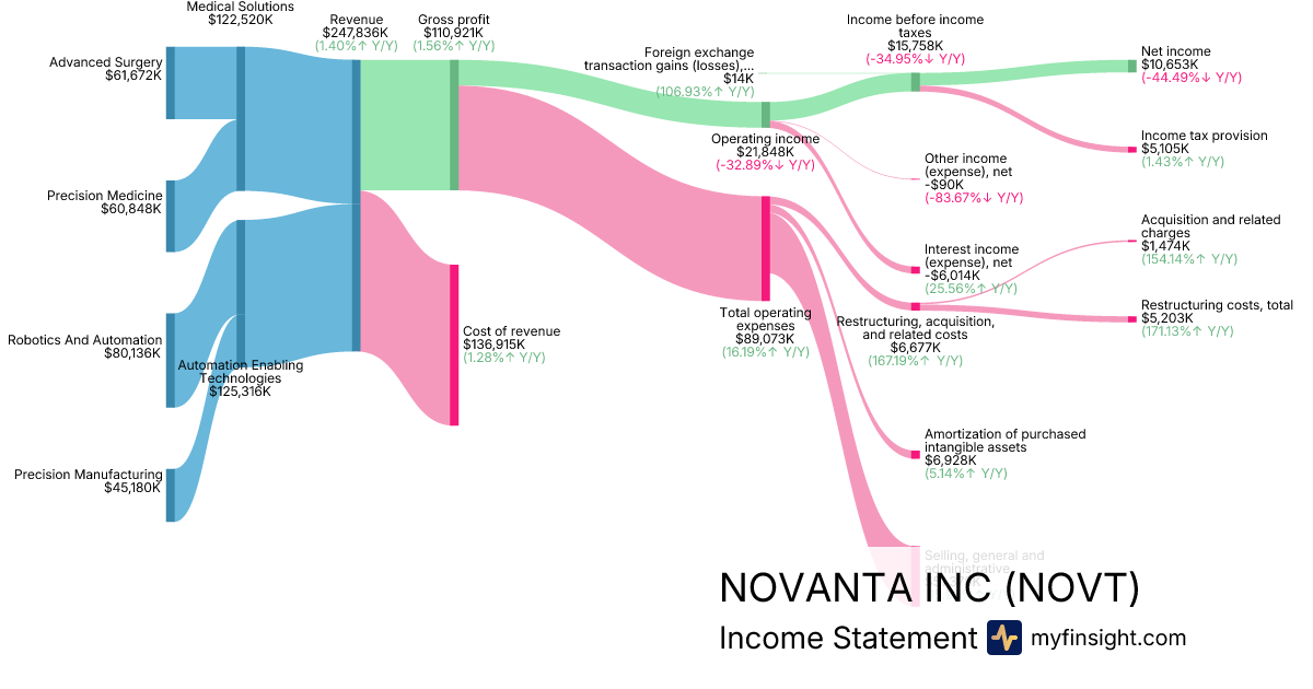 For the quarter ending 2025-09-26, NOVT made $247,836K in revenue. $10,653K in net income. Net profit margin of 4.30%.