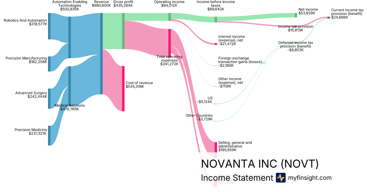 For the year ending 2025-12-31, NOVT made $980,600K in revenue. $53,829K in net income. Net profit margin of 5.49%.