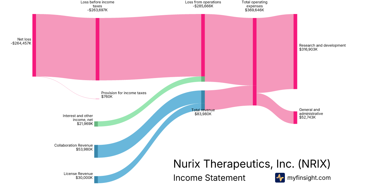 For the year ending 2025-11-30, NRIX made $83,980K in revenue. -$264,457K in net income. Net profit margin of -314.90%.