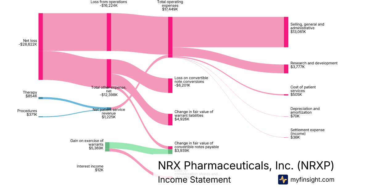 For the year ending 2025-12-31, NRXP made $1,225K in revenue. -$28,622K in net income. Net profit margin of -2336.49%.