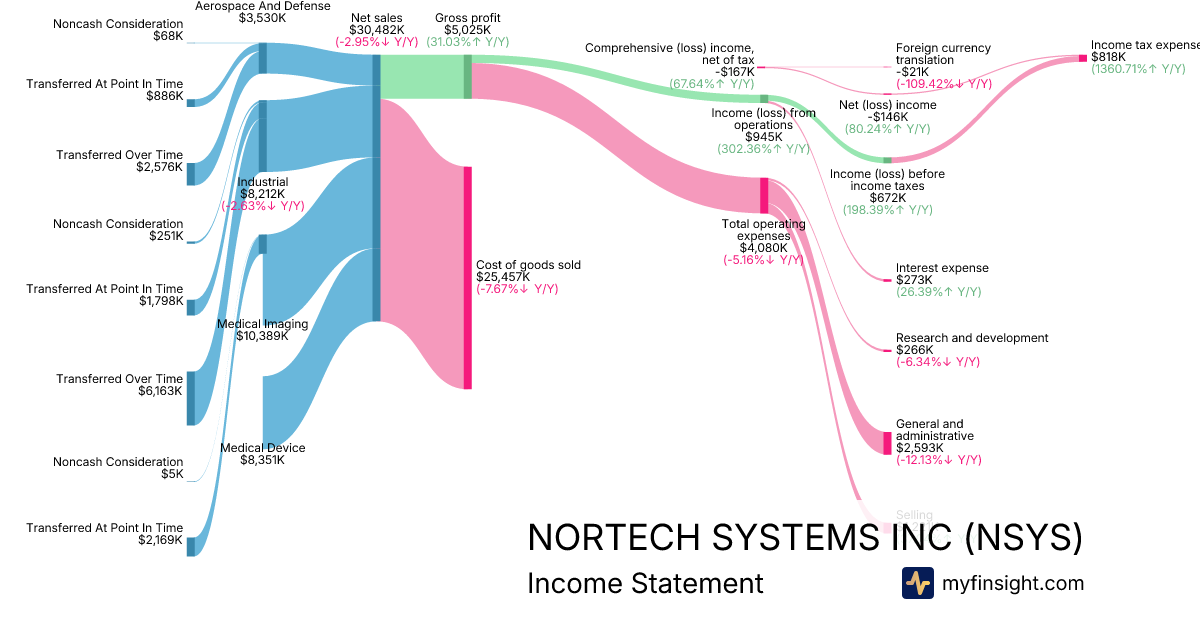 For the quarter ending 2025-09-30, NSYS made $30,482,000 in revenue. -$167,000 in net income. Net profit margin of -0.55%.