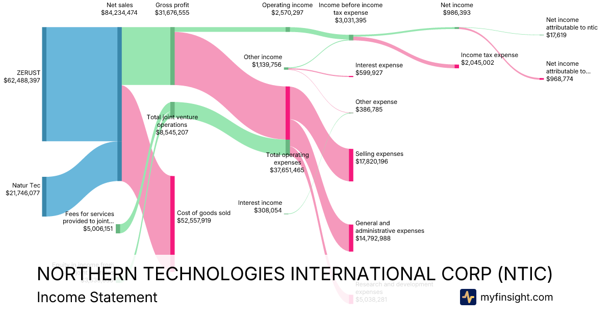 For the year ending 2025-08-31, NTIC made $84,234,474 in revenue. $17,619 in net income. Net profit margin of 0.02%.