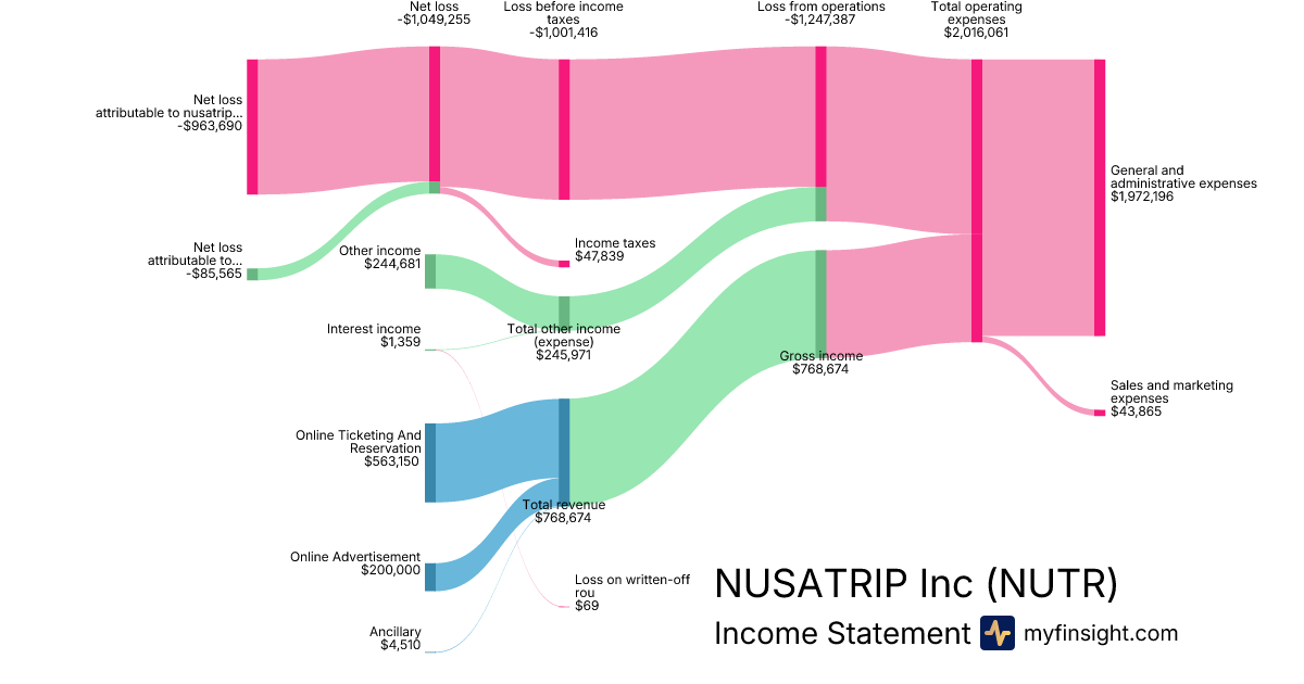 For the quarter ending 2025-09-30, NUTR made $768,674 in revenue. -$963,690 in net income. Net profit margin of -125.37%.