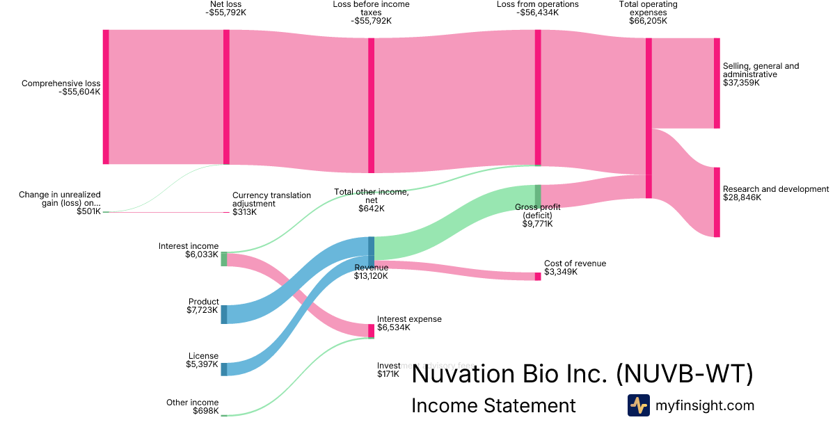 For the quarter ending 2025-09-30, NUVB-WT made $13,120K in revenue. -$55,604K in net income. Net profit margin of -423.81%.