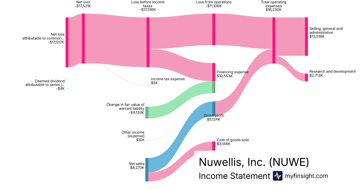 For the year ending 2025-12-31, NUWE made $8,270K in revenue. -$17,517K in net income. Net profit margin of -211.81%.