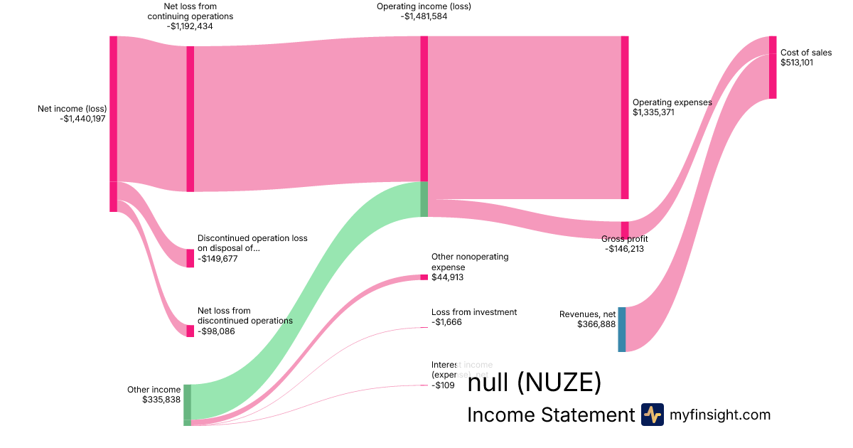 For the quarter ending 2024-06-30, NUZE made $366,888 in revenue. -$1,440,197 in net income. Net profit margin of -392.54%.