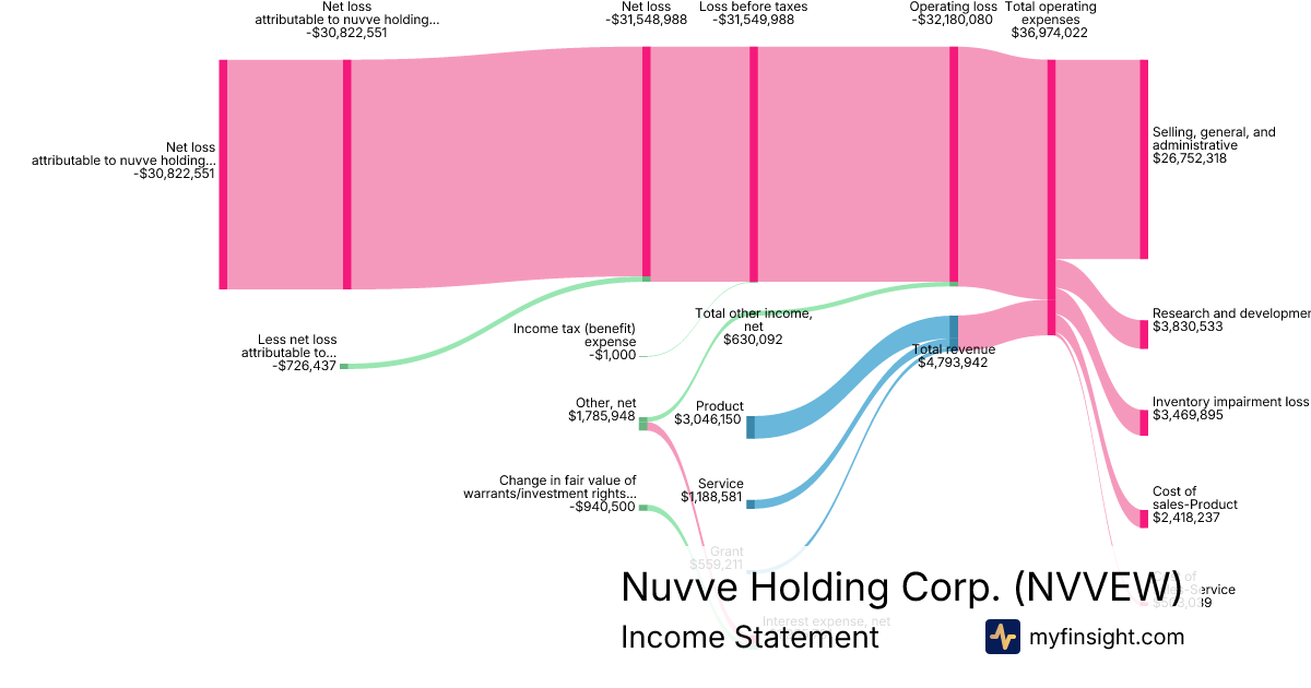 For the year ending 2025-12-31, NVVEW made $4,793,942 in revenue. -$30,822,551 in net income. Net profit margin of -642.95%.