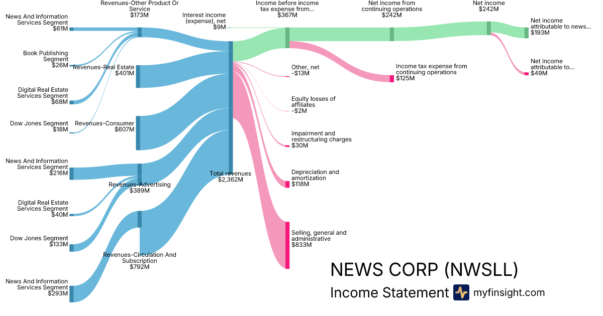 For the quarter ending 2025-12-31, NWSLL made $2,362M in revenue. $193M in net income. Net profit margin of 8.17%.