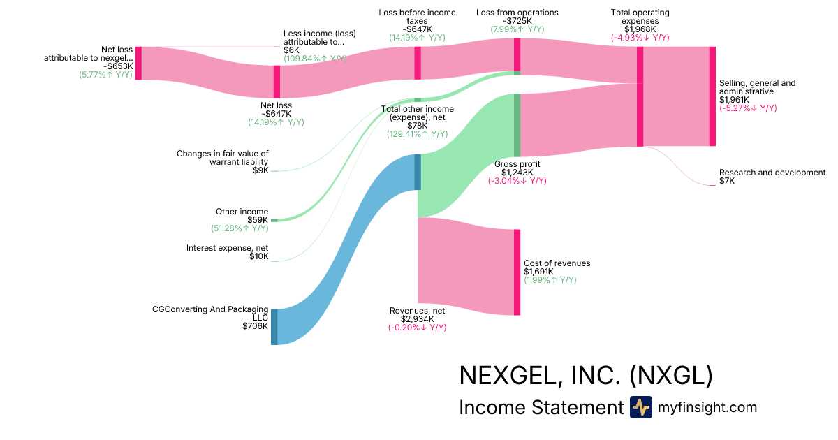 For the quarter ending 2025-09-30, NXGL made $2,934,000 in revenue. -$653,000 in net income. Net profit margin of -22.26%.