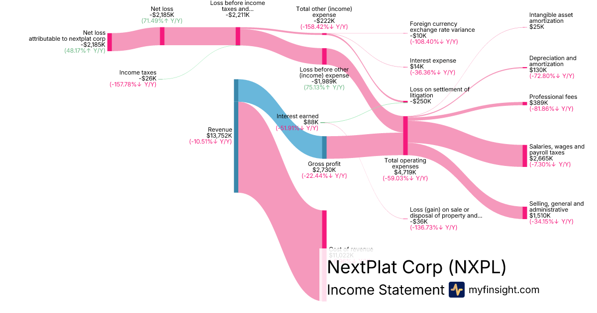 For the quarter ending 2025-09-30, NXPL made $13,752K in revenue. -$2,185K in net income. Net profit margin of -15.89%.