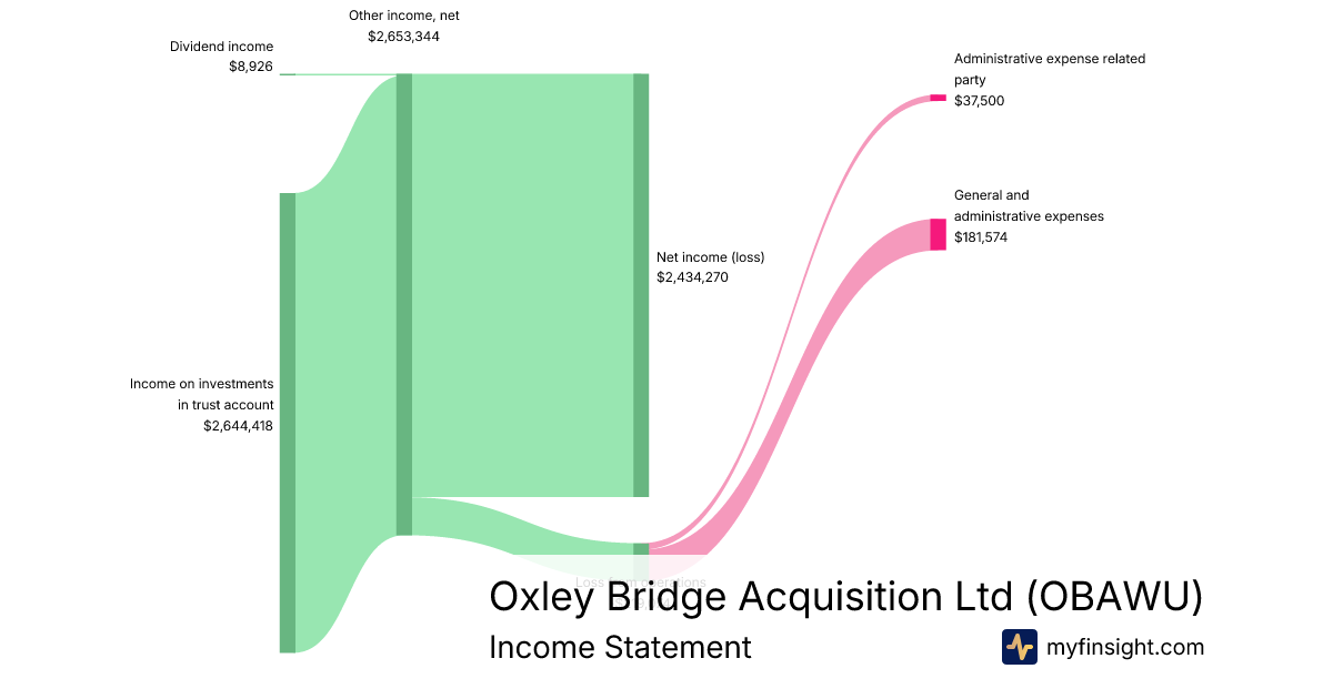 For the quarter ending 2025-09-30, OBAWU made $2,653,344 in revenue. $2,434,270 in net income. Net profit margin of 91.74%.
