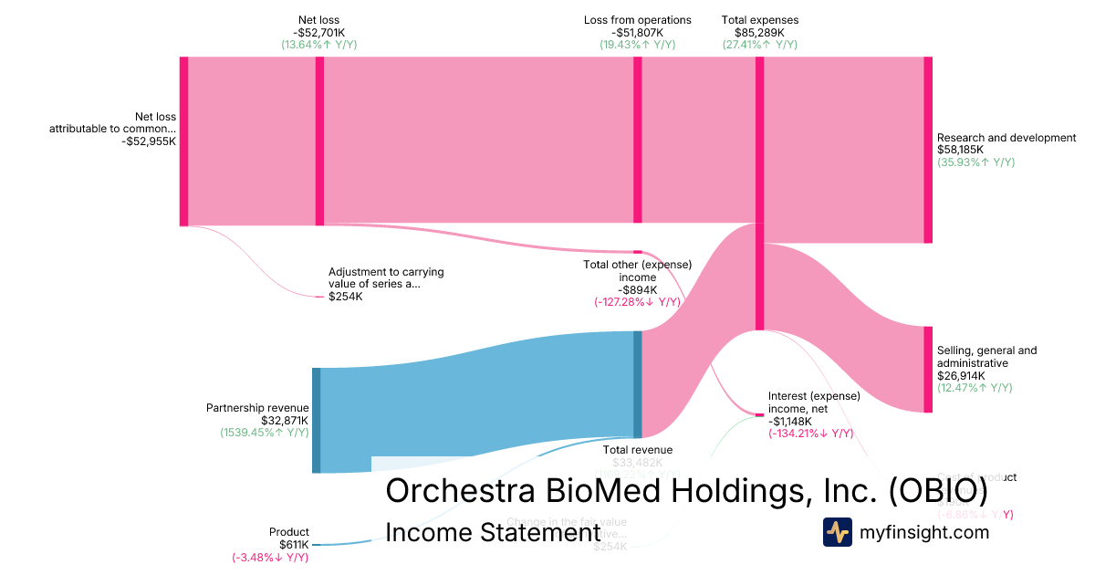 For the year ending 2025-12-31, OBIO made $33,482K in revenue. -$52,955K in net income. Net profit margin of -158.16%.