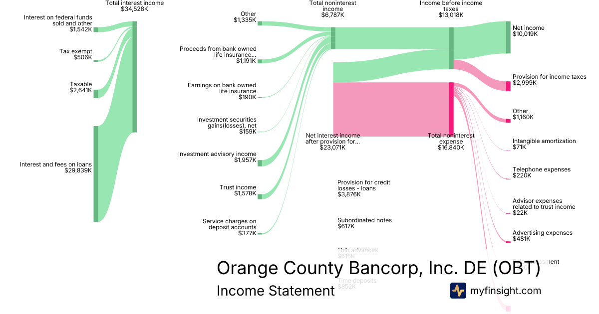 For the quarter ending 2025-09-30, OBT made $65,736K in revenue. $10,019K in net income. Net profit margin of 15.24%.