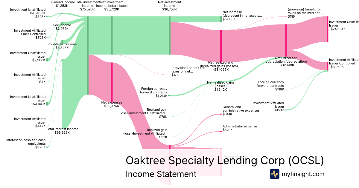 For the quarter ending 2025-12-31, OCSL made $115,890K in revenue. $5,608K in net income. Net profit margin of 4.84%.
