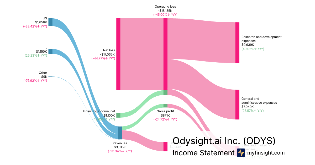 For the year ending 2025-12-31, ODYS made $3,015K in revenue. -$17,035K in net income. Net profit margin of -565.01%.