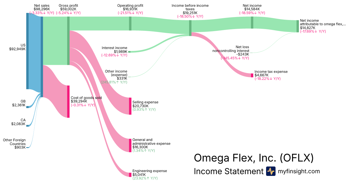 For the year ending 2025-12-31, OFLX made $98,296K in revenue. $14,827K in net income. Net profit margin of 15.08%.