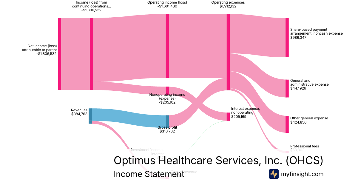 For the quarter ending 2024-09-30, OHCS made $384,763 in revenue. -$1,806,532 in net income. Net profit margin of -469.52%.