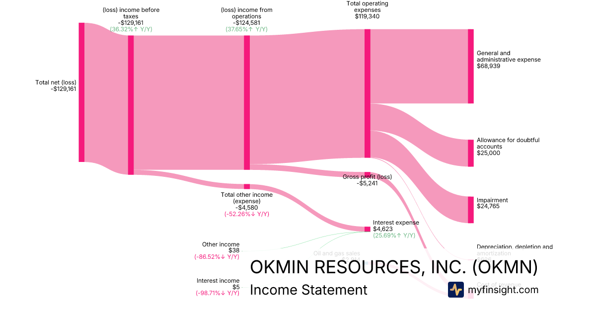 For the quarter ending 2025-12-31, OKMN made $2,814 in revenue. -$129,161 in net income. Net profit margin of -4589.94%.