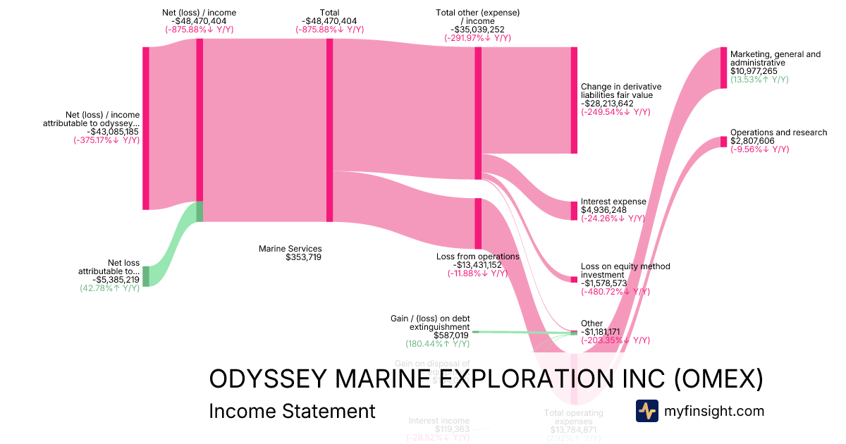For the year ending 2025-12-31, OMEX made $353,719 in revenue. -$43,085,185 in net income. Net profit margin of -12180.63%.