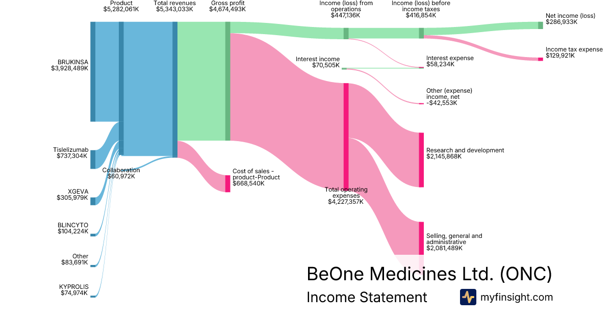 For the year ending 2025-12-31, ONC made $5,343,033K in revenue. $286,933K in net income. Net profit margin of 5.37%.