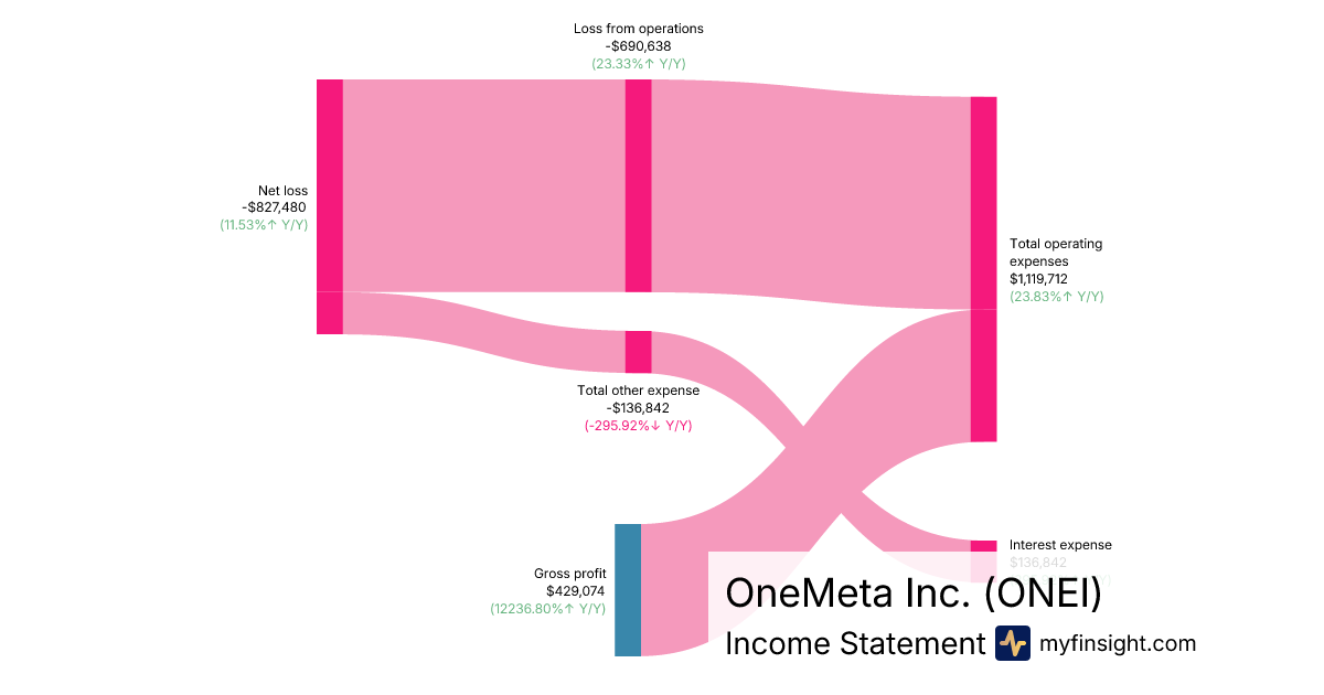 For the quarter ending 2025-09-30, ONEI made $429,074 in revenue. -$827,480 in net income. Net profit margin of -192.85%.
