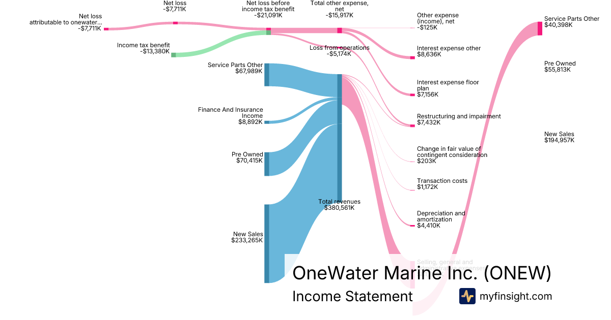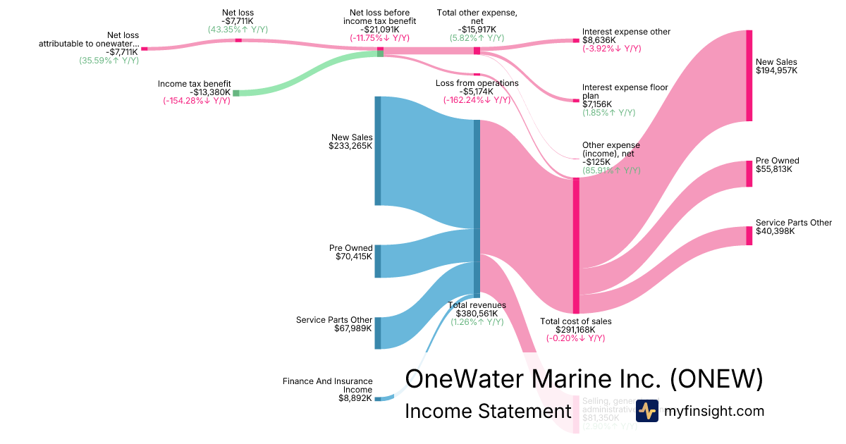 For the quarter ending 2025-12-31, ONEW made $380,561K in revenue. -$7,711K in net income. Net profit margin of -2.03%.