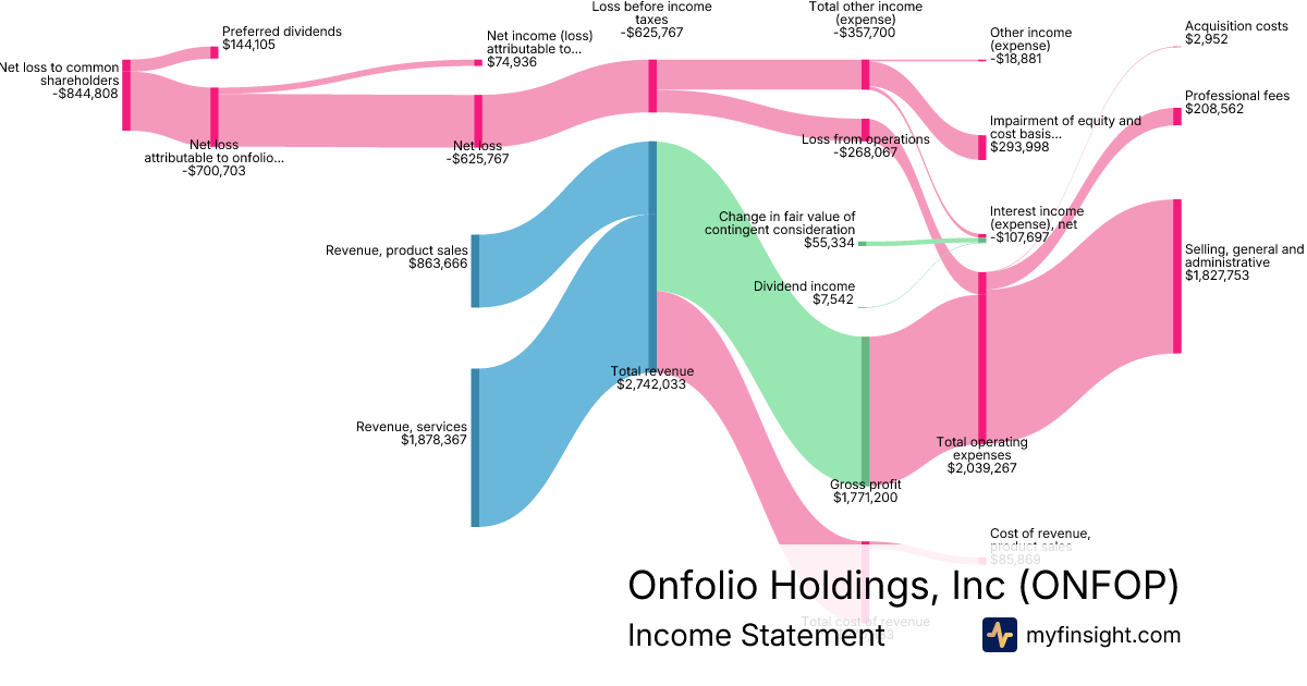 For the quarter ending 2025-09-30, ONFOP made $2,742,033 in revenue. -$844,808 in net income. Net profit margin of -30.81%.