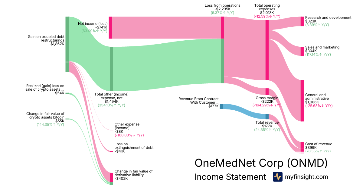 For the quarter ending 2025-09-30, ONMD made $177K in revenue. -$741K in net income. Net profit margin of -418.64%.
