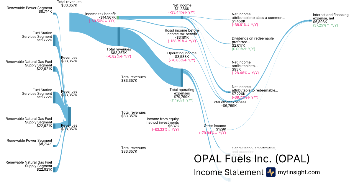 For the quarter ending 2025-09-30, OPAL made $83,357K in revenue. $1,450K in net income. Net profit margin of 1.74%.